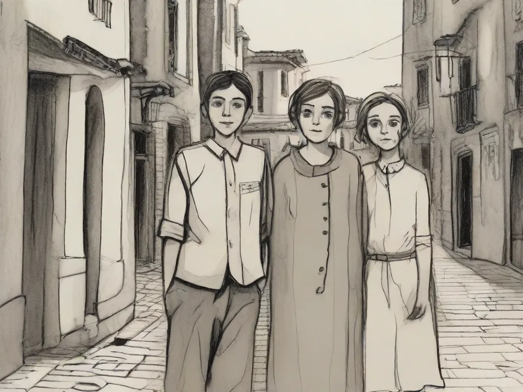 Me with my mother and big sister and small sister on a old town in spain i am a boy