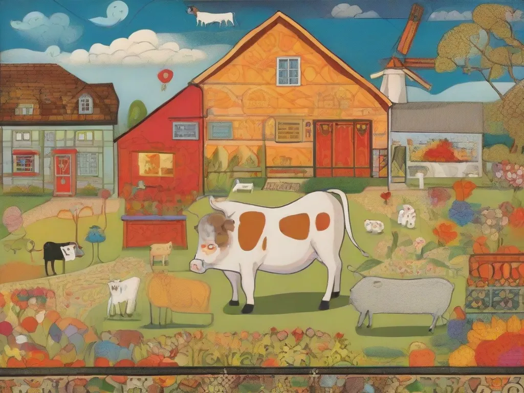 Dutch farm with cows and a dog