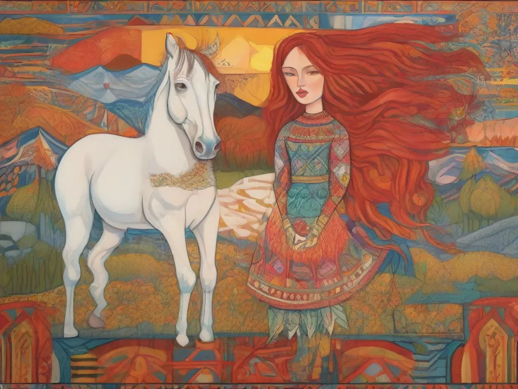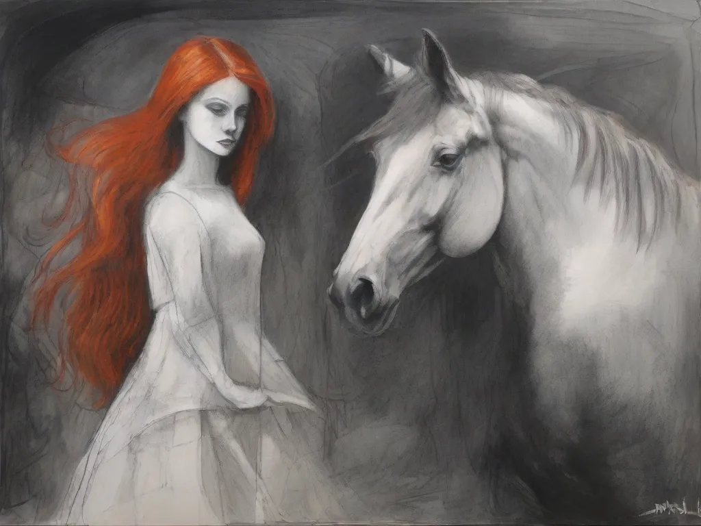 A girl with red hair and a horse