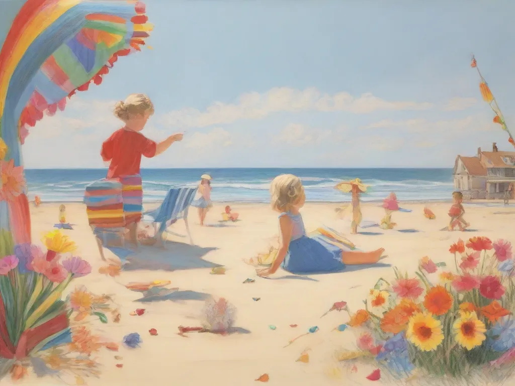 Playing on the beach in Knokke-Heist, where we made a flowershop with crepe paper flowers and sold these to other children for coutaux (seeshells) while my grandmother was laying on her sunbed with one eye open and one eye closed.