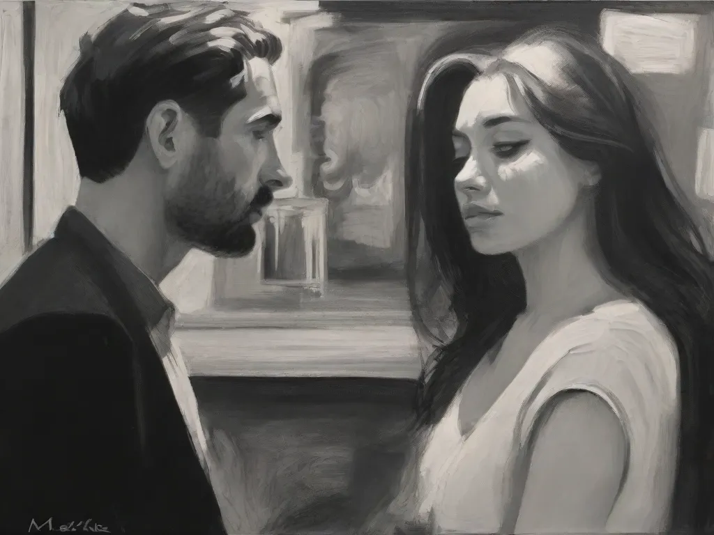Una pareja viendo una exposición de arte en un museo en Marbella. Están felices y enamorados y se ve el amor que desprenden.
