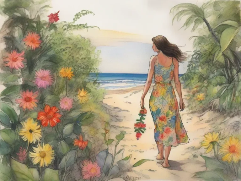 A girl was walking on a sunny beach