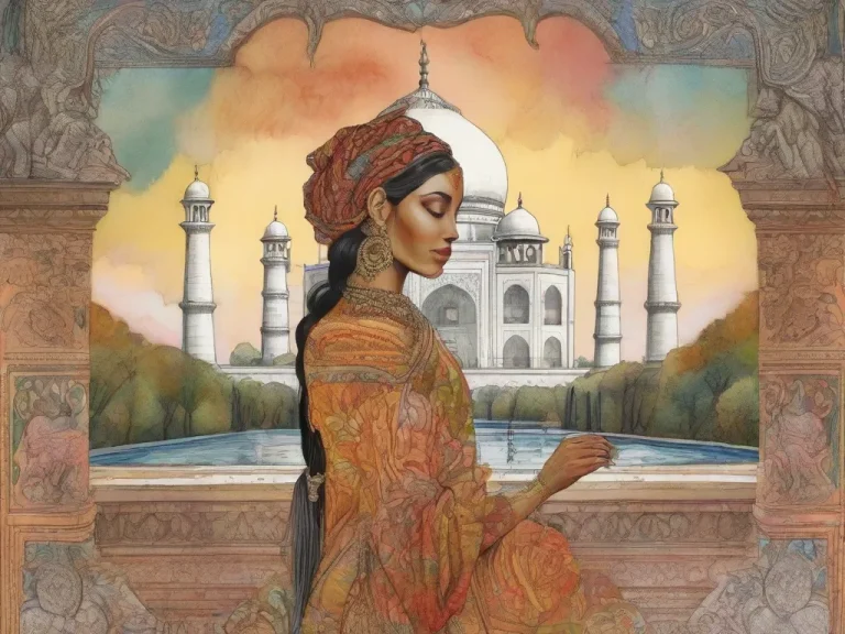mujer india con sari en el taj mahal